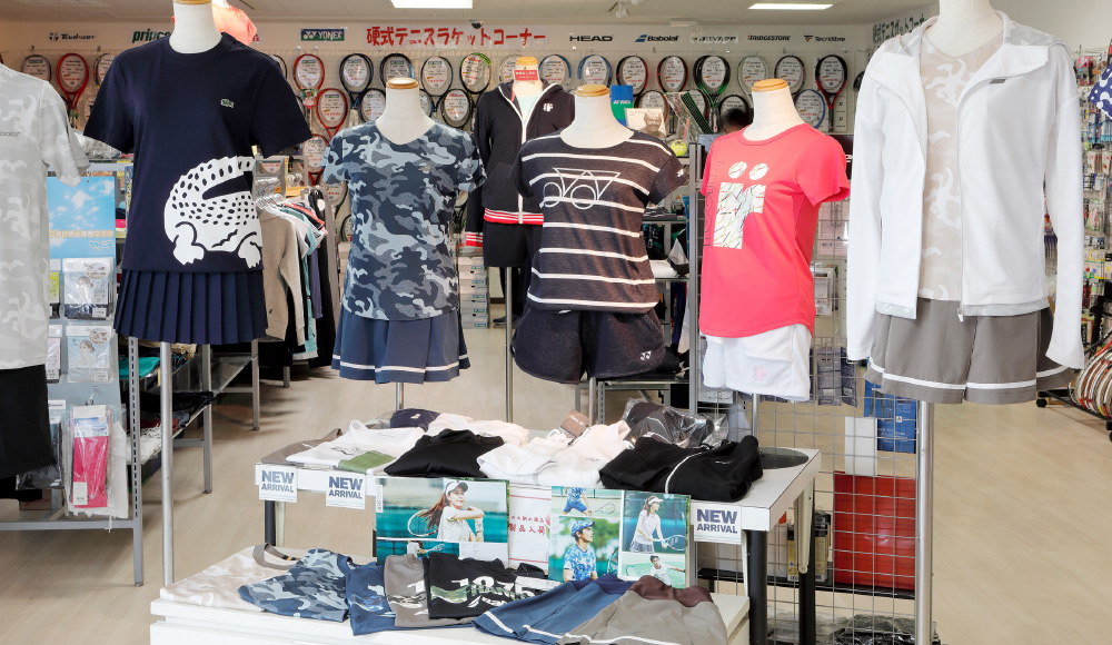 直営のプロテニスショップでは、ウェアやラケット、シューズや小物販売、ガットの張替えも対応しています。テニス初心者から上級者まで気軽に参加できるテニス大会を随時開催・運営。テニスコートレンタルも行っています。お気軽にご相談ください。