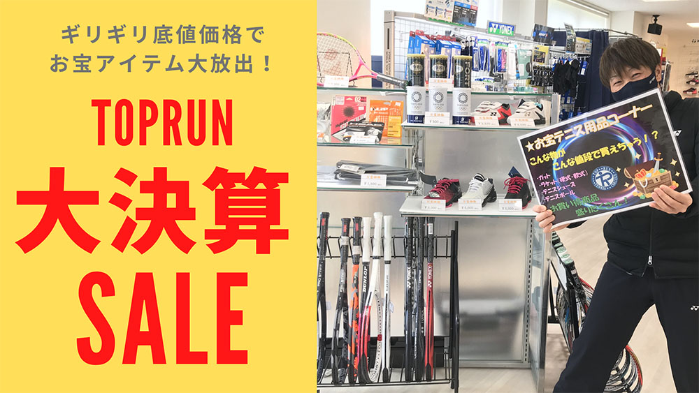 トップランテニスプロショップ決算セール開催 トップランテニスプロショップが、2月13日(土)~28日(日)の期間限定で決算セールを開催します。目玉商品から、早いもの勝ちのお宝アイテムが続々登場!! お宝アイテムを一部ご紹介! 【早いもの勝ち】サイズ... -