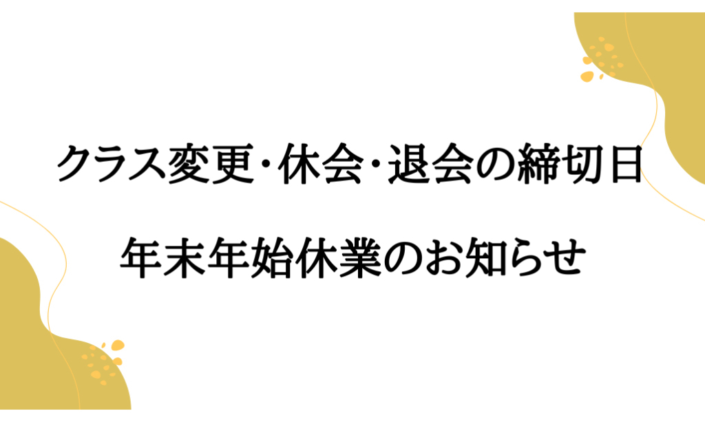 クラス変更・休会・退会の締切日 年末年始営業時間のお知らせ