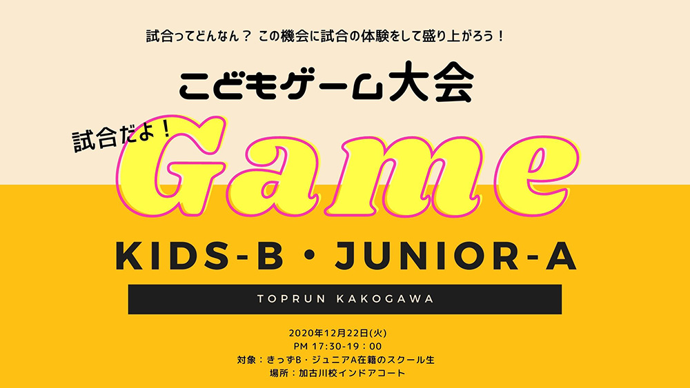初めての試合体験をしよう!キッズB・ジュニアA ゲーム大会
