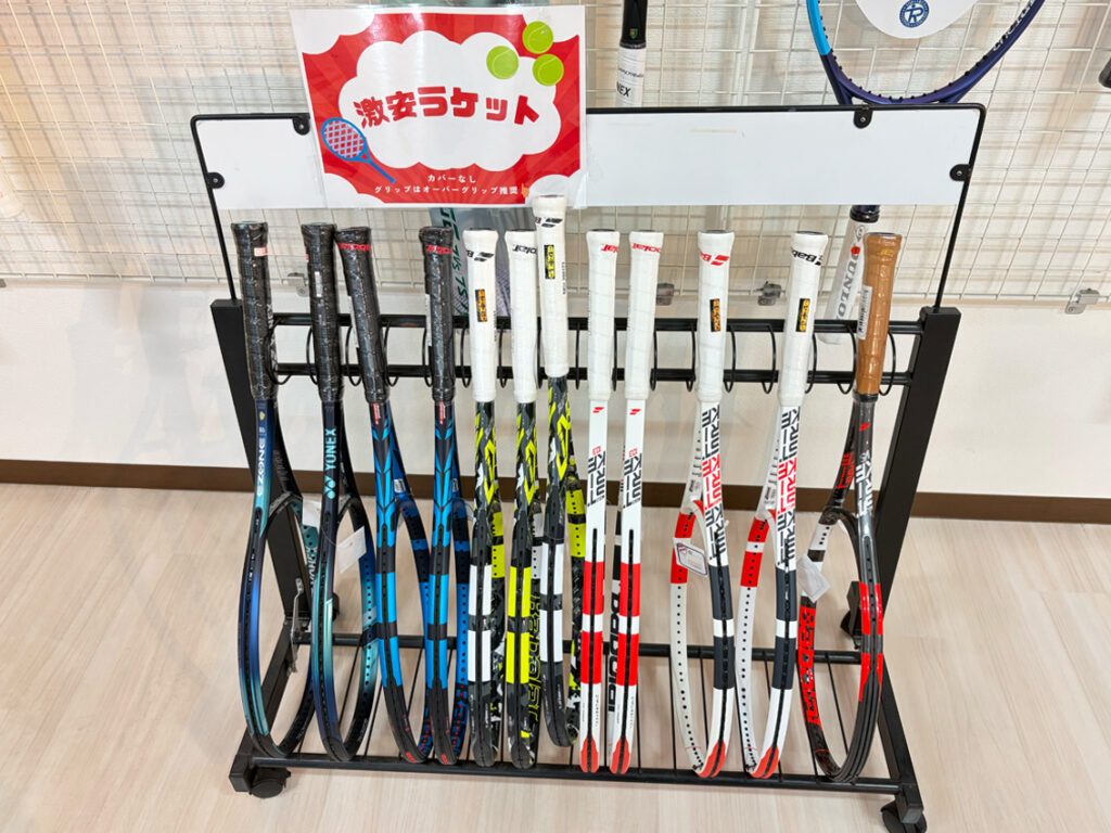 旧モデルのラケットを、とにかくお安く販売します。これからテニスを始めらる方はぜひチェックしてみてください!