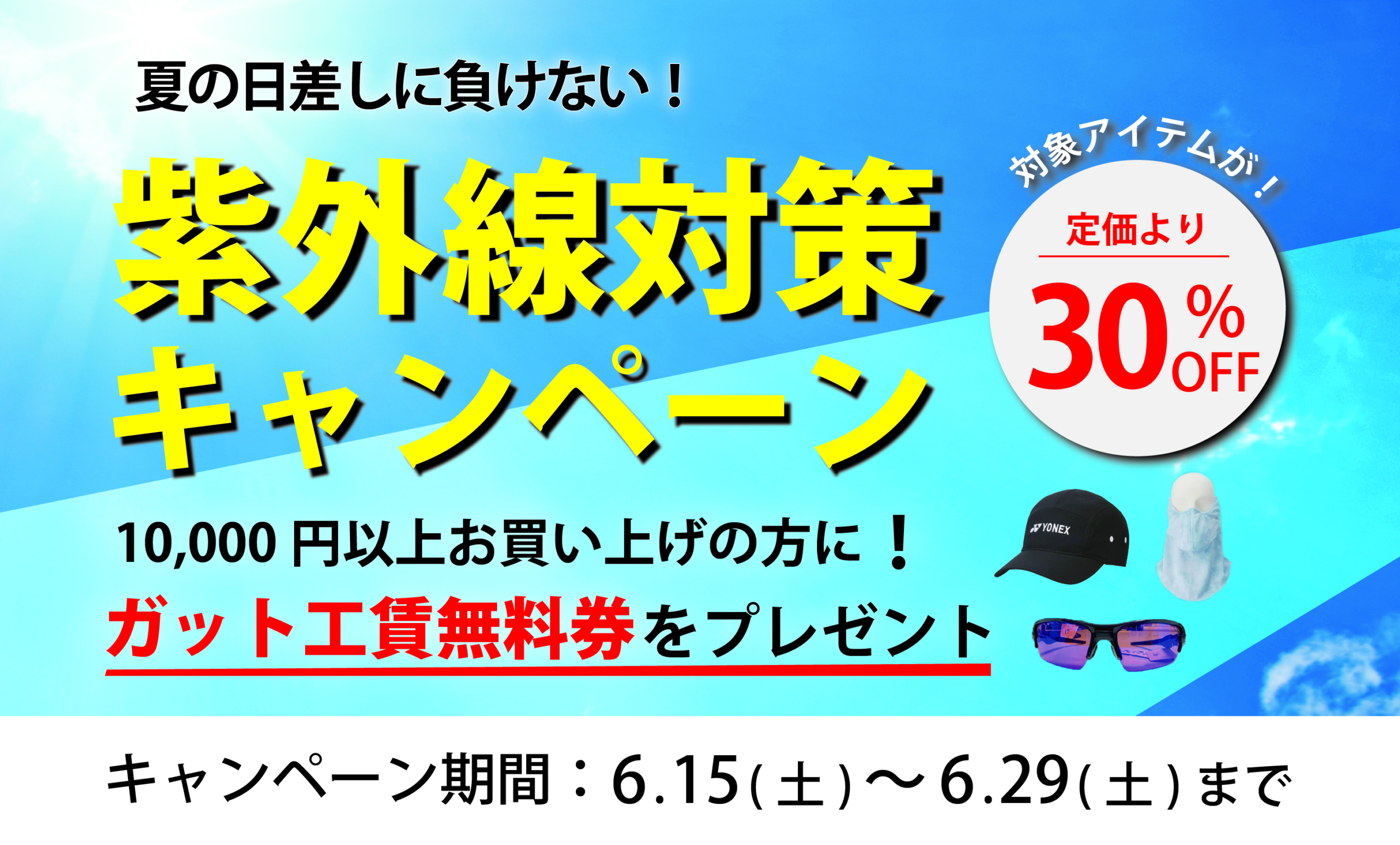 キャンペーン期間中に、対象商品を10,000円以上ご購入すると!ガット工賃無料券を1枚プレゼント。